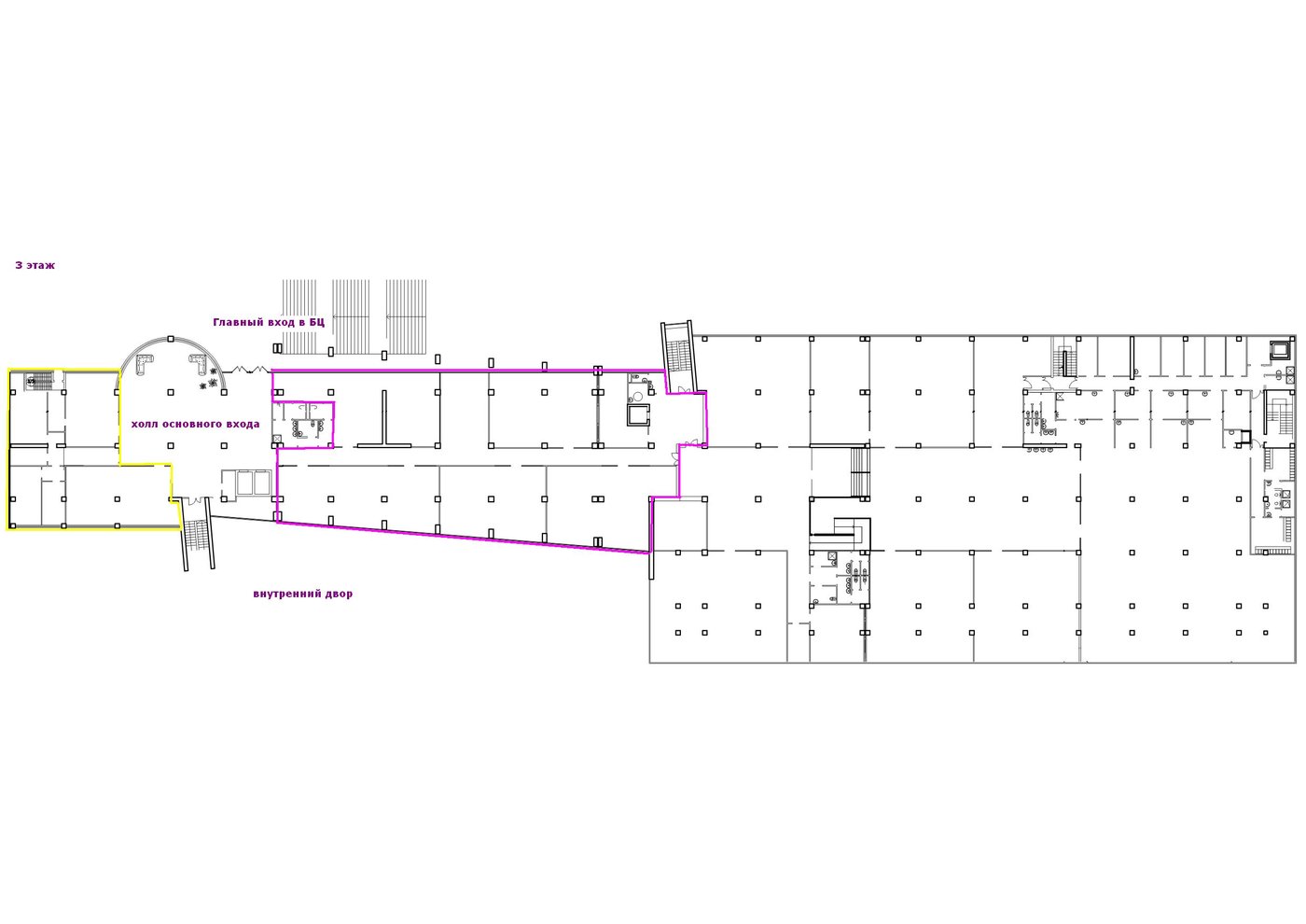 | 3 | 3 | Офисы, ресторан, офисы+ресторан | Центральный холл центра с лифтом и пожарным выходом. Направо и налево от него - реализуемые помещения. Площадь холла 232 кв.м., правой части - 170 , центральной - 750 . Итого: 1153 кв.м. | 170, 750, 1153 | Главный вход в центральную часть, отдельный вход | да | 3,5 | индивидуально | 45 | план посмотреть | ||