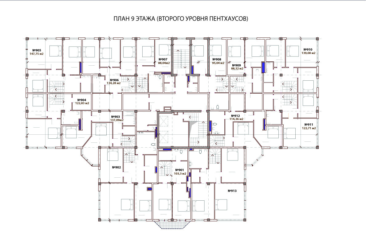 Планировки типового этажа и этажа пентхаусов: