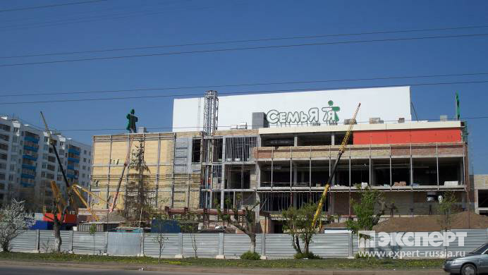 - Напротив Универмага «Уфа» строится торгово-офисный центр «Семья». Там предлагаются площади как в собственность, так и в аренду. Вид с ул. Комсомольской