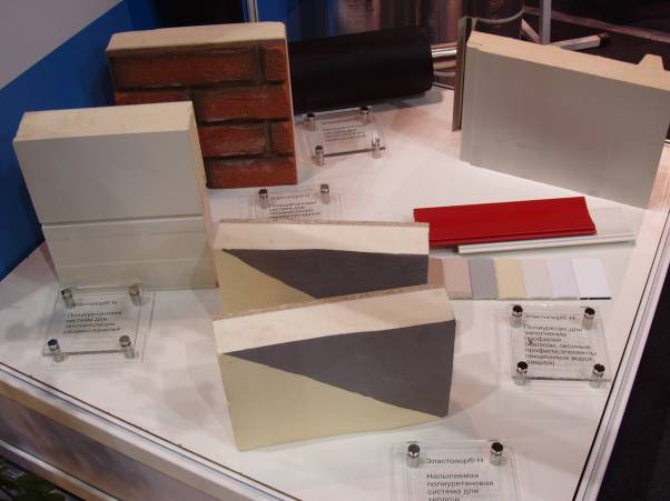 Среди современных материалов также были представлены сэндвич-панели с полиуретановым наполнением и быстровозводимые металлические конструкции.