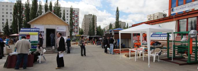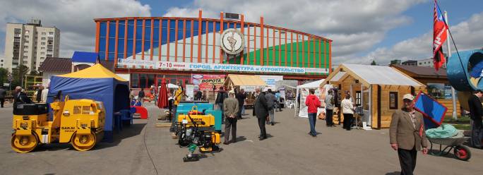 Выставка начиналась на площади перед Дворцом Спорта. Были представлены различные технологии и техника, применяемая для строительства