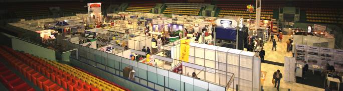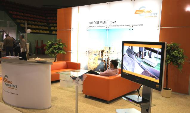 На арене Дворца расположилась основная экспозиция. Тут расположились стенды банков, строительных компаний, производителей различных материалов и конструкций: