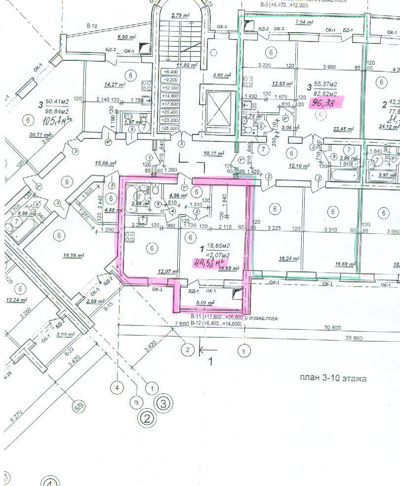 - Планировка дом №7,трехкомнатная 96,38 кв.м.и однокомнатная 44,58 кв.м