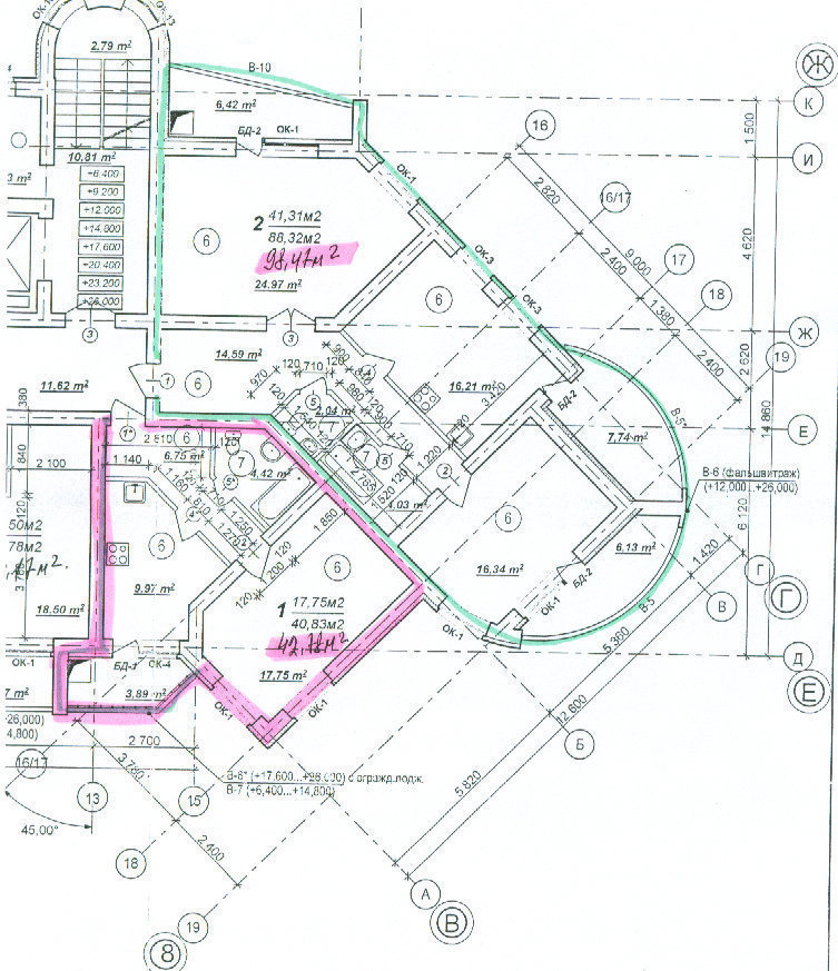 - Планировка дом №7, однокомнатная квартира 44,17 кв.м. и двухкомнатная квартира 81,37 кв.м.