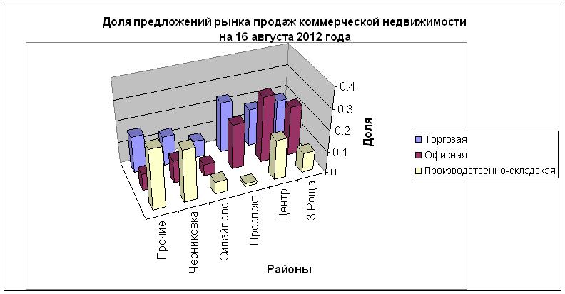 Торговые помещения. Как всегда, на рынке нехватка помещений «бутикового» формата с отдельным входом и оптимальной площади. На среднерыночную цену влияет избыток площадей в торговых центрах. Более активное внимание покупатели стали обращаться на З.Рощу. так как разнообразие помещений и перспективы в этом районе не меньше, чем в центре, а застраивается он активнее. В Черниковке