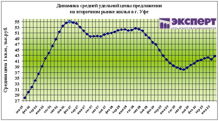 По состоянию на 13 сентября 2010 г. цены на вторичном рынке жилья г. Уфы за неделю выросли на 0,6%