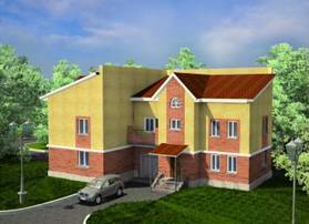 | Рис. 4: Комбинированный жилой дом на 4 семьи | Рис. 5: Сблокированный жилой дом на 8 семей (таун-хаус) |