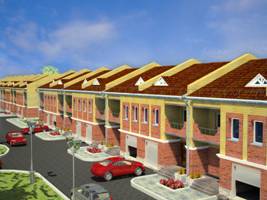 Застройка 1-3 очередей осуществляется 2-х этажными домами 2-х типов: таун-хаусами на 8 семей и комбинированными домами на 4 семьи (см. фото ниже):