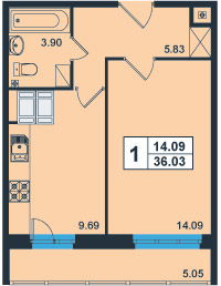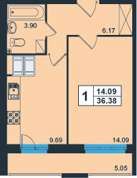 | Общая площадь:36.38 м.кв. Количество комнат:1 Площадь кухни:9.69 м.кв. 79.83 тыс.руб/кв.м. Балкон/лоджия:лоджия Отделка:да |