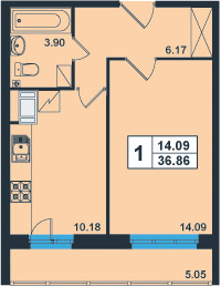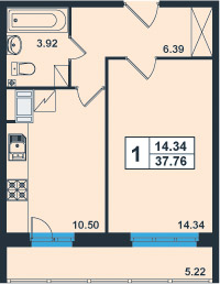 | 1-комнатная | 34 - 38 | 79830 |