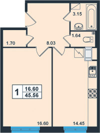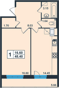 | Общая площадь:48.4 м.кв. Количество комнат:1 Площадь кухни:14.45 м.кв. 76.5 тыс.руб/кв.м. Балкон/лоджия:лоджия Отделка:да |
