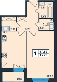 | Общая площадь:45.78 м.кв. Количество комнат:1 Площадь кухни:12.75 м.кв. 76.5 тыс.руб/кв.м. Балкон/лоджия:лоджия Отделка:да |