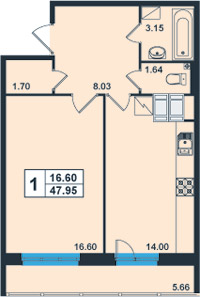 | Общая площадь:47.95 м.кв. Количество комнат:1 Площадь кухни:14.00 м.кв. 76.5 тыс.руб/кв.м. Балкон/лоджия:лоджия Отделка:да |