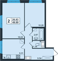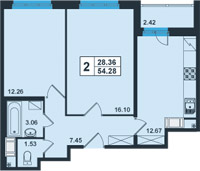 | 2-комнатная | 49.9 – 57.7 | 76050 |