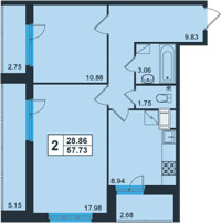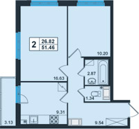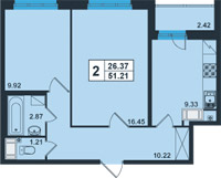 | 2 - европланировка | 51.17 | 76050 |