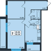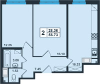 | Общая площадь:56.36 м.кв. Количество комнат:2 Площадь кухни:8.94 м.кв. 76.05 тыс.руб/кв.м. Балкон/лоджия:2 лоджии Отделка:да |