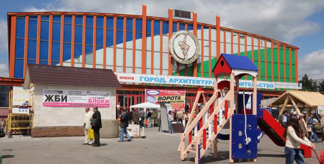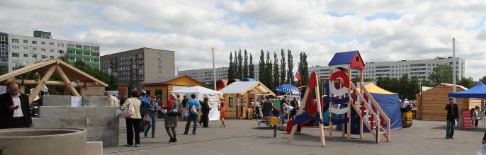 Выставка начиналась на площади перед Дворцом Спорта. Были представлены различные технологии и техника, применяемая для строительства