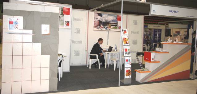 На арене Дворца расположилась основная экспозиция. Тут расположились стенды банков, строительных компаний, производителей различных материалов и конструкций: