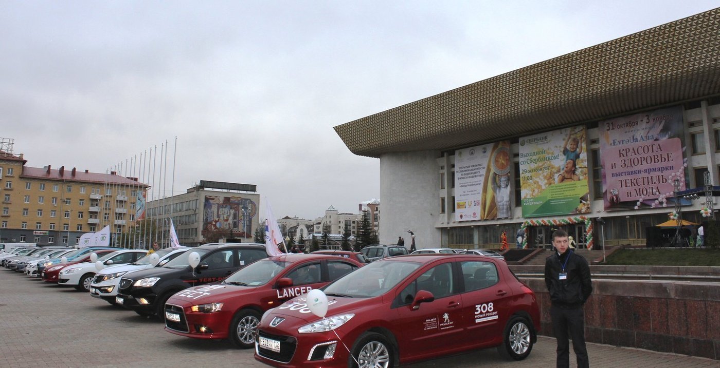 На площади перед дворцом автодилеры выставили самые популярные модели автомобилей и проводили тест-драйвы.