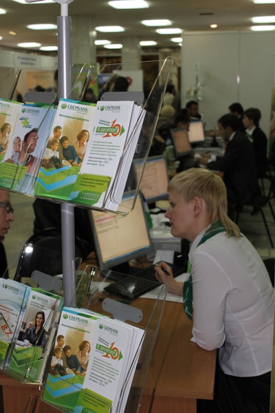 Банк все больше поворачивается "лицом к клиентам". Совершенствование работы банка происходит постоянно, это заметно по улучшающемуся сервису, меняющемуся внешнему виду банка. Скоро мы увидим новый формат клиентского обслуживания в офисах банка. Пример нового стиля был также представлен на выставке.