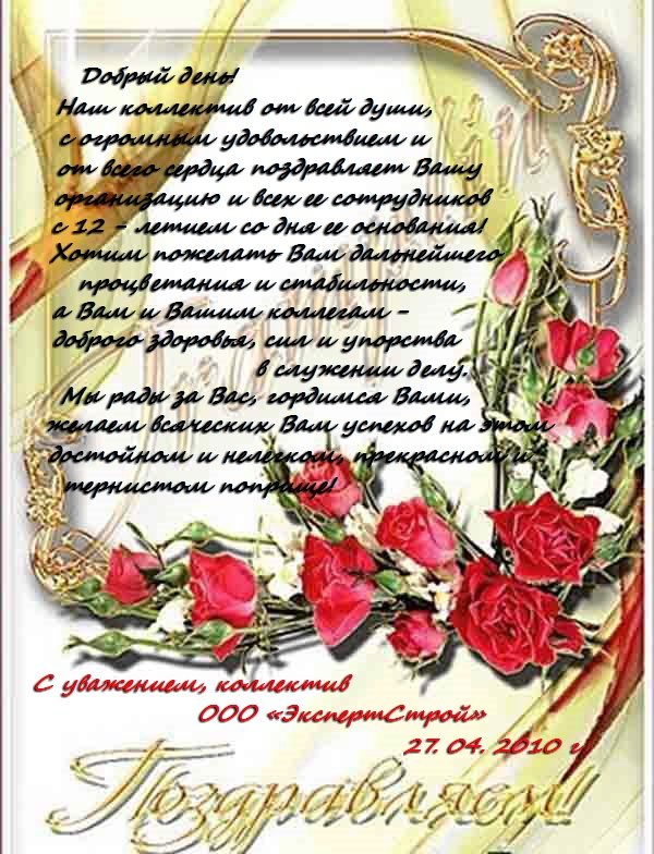 Коллектив офиса 'ЭкспертСтрой' поздравляет офис на пр. Октября 11 с 12-летием!