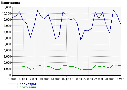 В феврале 2010 г. сайт преодолел отметку посетителей в 1000 человек в выходние дни.