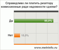И мы приходим к выводу – за чистоту сделки, спокойствие и экономию времени и здоровья риэлторам стОит платить их комиссионные, и жалеть об этом не нужно. Однако журнал Metrinfo.ru вовсе не считает свое мнение истиной в последней инстанции и поэтому за разъяснениями обращается к народу, - при помощи социологического опроса.