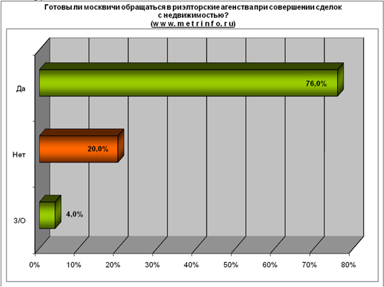 Представители второй группы, - те люди, которые высказались против риэлторских гонораров и их оказалось не так много – 15%, - пояснили нам, что «никому не верят» и считают услуги посредников «махинациями». Кроме того, они уверены, что риэлторы не гарантируют надежности сделки. Участники этой группы полагают, что риэлторы берут слишком дорого: «это грабеж»; «это работа столько не стоит». Наконец, некоторые думают, что квартирную сделку можно провести самостоятельно: «мы сами все специалисты»; «можно самим все сделать и хорошо».
