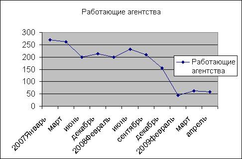 | Работающие агентства | 270 | 261 | 200 | 213 | 200 | 231 | 209 | 156 | 45 | 63 | 59 |