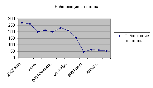 | Работающие агентства | 270 | 261 | 200 | 213 | 200 | 231 | 209 | 156 | 45 | 63 | 59 | 52 | ||
