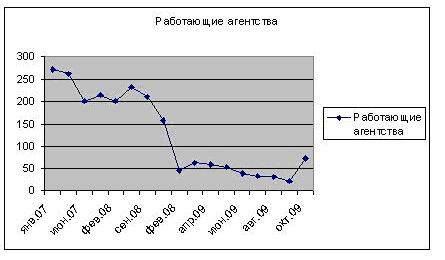 | Работающие агентства | 45 | 63 | 59 | 52 | 39 | 34 | 31 | 22 |
