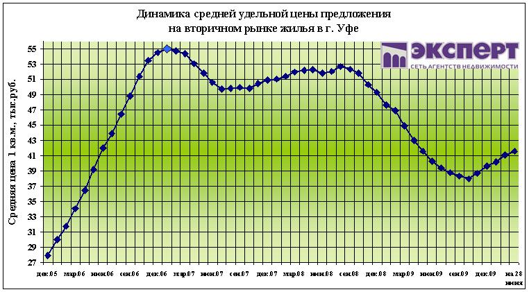 Средняя цена предложения 1 кв.м. по всем типам квартир на 28 июня 2010 г. составила 41,57 (+/-0,58) т.р./кв.м., изменения за неделю -0,1%.