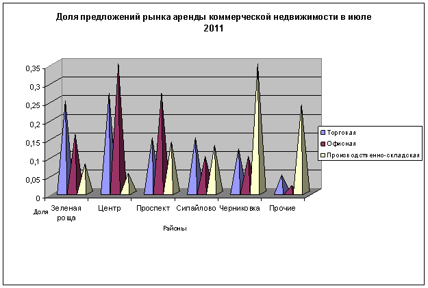Анализ цен и распределение предложения на рынке коммерческой недвижимости г. Уфы в июле 2011 года