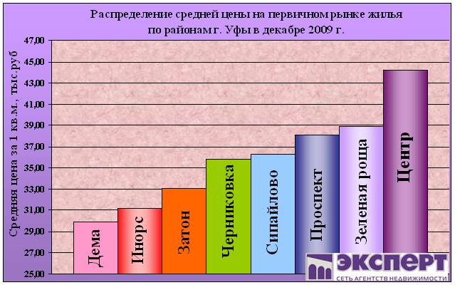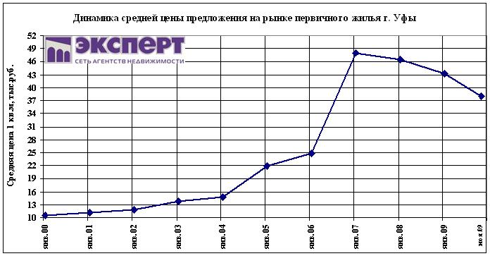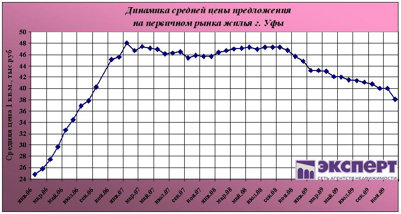 Рынок первичного жилья Уфы в декабре 2009 года оживился. Застройщики снизили цены на 2-3 комнатные квартиры, которые плохо продавались весь год. Все это привело к снижению цен за месяц почти на 5%. Тем не менее «дно» застройщики нащупали. Проданы практически все ликвидные квартиры. По прогнозам аналитиков «Эксперт» в 2010 году будут разморожены те объекты, что были заморожены в 2009 году (по разным прогнозам от 50 до 70 объектов).