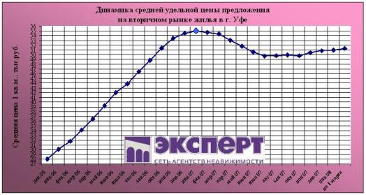 В феврале 2008 года Уфа в рейтинге цен на жилье среди 14 городов-миллионников пропустила вперед Волгоград, где за месяц цены выросли на 27% (!!!). Напомним, что в декабре 2006 года Уфа занимала 3-ую позицию, уступая только Москве и Санкт-Петербургу. И вот, постепенно, за год, цены на недвижимость в Уфе стабилизировались и в течение всего 2007 года плавно снижались. За год на 7-12% в зависимости от вида квартир.