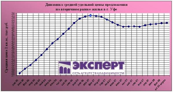 Рынок жилой недвижимости Уфы с 17 по 24 марта 2008 г.: цены выросли за неделю на 0,3%