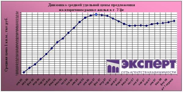 Рынок жилой недвижимости Уфы на 7 апреля 2008 г.: цены выросли за неделю на 0,8%