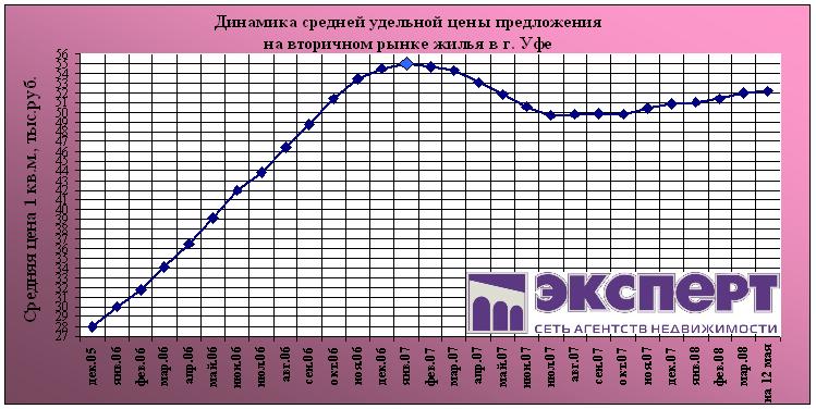 Рынок жилой недвижимости Уфы с 28 апреля по 12 мая 2008 г.: цены за 2 недели выросли на 0,1%