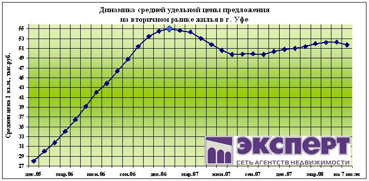 Квартиры в Уфе за неделю подорожали на 0,1%. Рынок жилой недвижимости Уфы на 7 июля 2008 г.