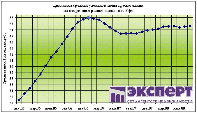 Так по данным Росстата на16 сентября 2008 года инфляция составила 10 % с начала 2008 года. В то же время цены на жилье в Уфе выросли за этот период всего на 3,1%. Из этого следует, что жилье в сентябре 2008 года стало дешевле относительно «стоимости денег» по сравнению с началом 2008 г.