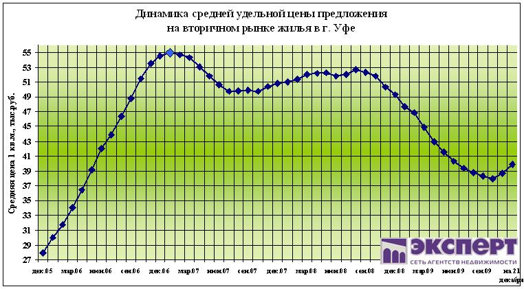 По состоянию на 21 декабря 2009 г. цены на вторичном рынке жилья г. Уфы выросли на 0,4%