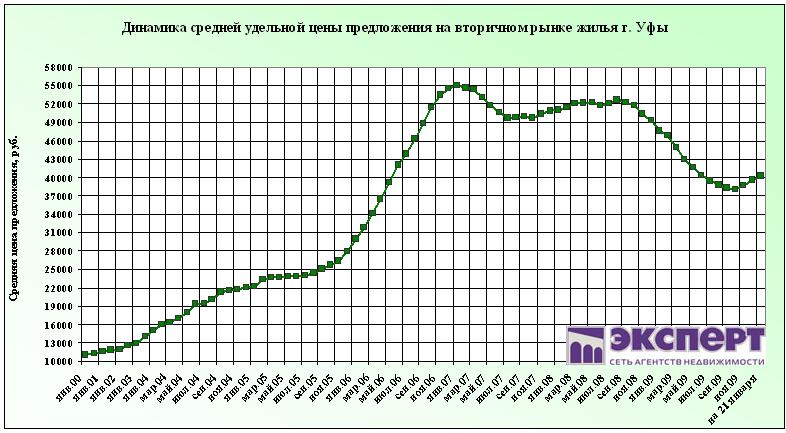 По состоянию на 25 января 2010 г. цены на вторичном рынке жилья г. Уфы снизились на 0,1%