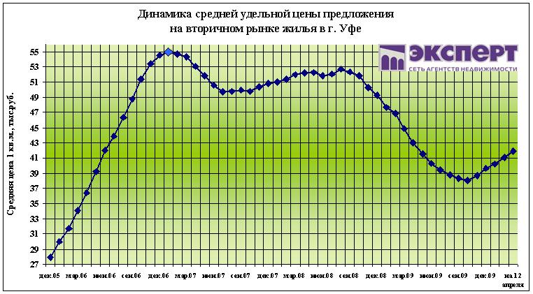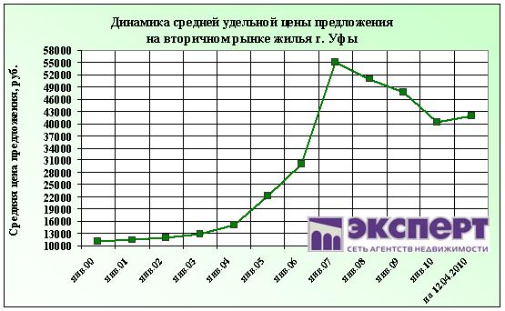 По состоянию на 12 апреля 2010 г. цены на вторичном рынке жилья г. Уфы за неделю выросли на 0,2%