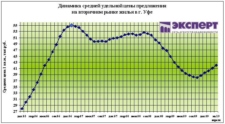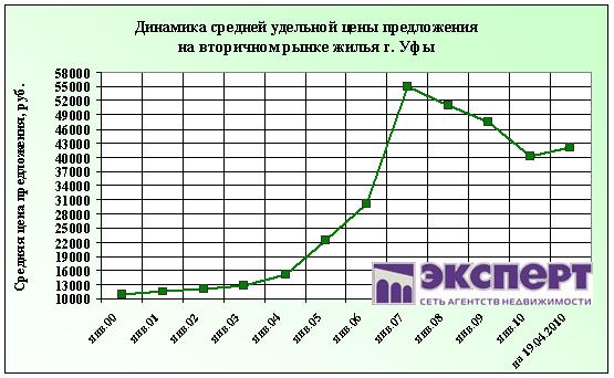 По состоянию на 19 апреля 2010 г. цены на вторичном рынке жилья г. Уфы за неделю выросли на 0,4%. Рост идет уже 12 неделю подряд, опережая инфляцию