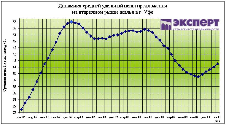 По состоянию на 31 мая 2010 г. цены на вторичном рынке жилья г. Уфы за неделю снизились на 0,5%. Ликвидные объекты уходят с рынка недвижимости