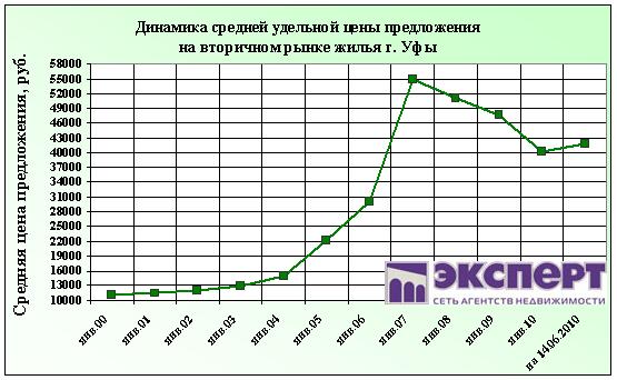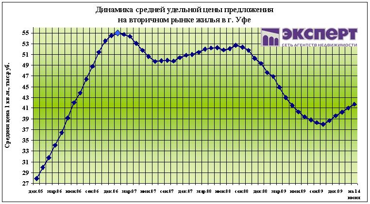 По состоянию на 14 июня 2010 г. цены на вторичном рынке жилья г. Уфы за неделю снизились на 0,3%