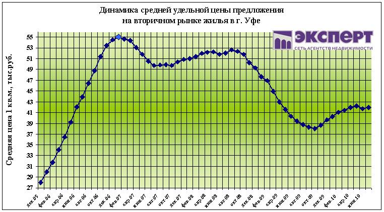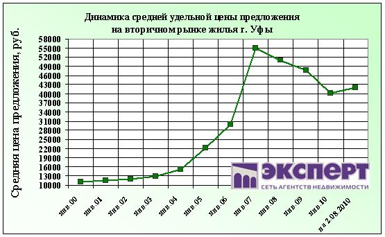 По состоянию на 2 августа 2010 г. цены на вторичном рынке жилья г. Уфы за неделю выросли на 0,3%