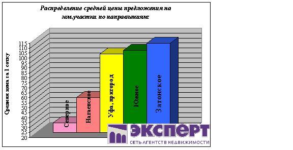 Уфа, пригород – средняя цена предложения 1 сотки 99,6 т.р.