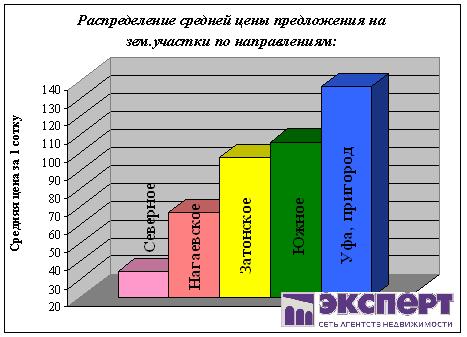 Уфа, пригород – средняя цена предложения 1 сотки - 136,7 т.р.