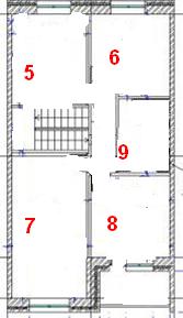 На втором этаже – 4 спальни (5,6,7,8) и санузел (9).